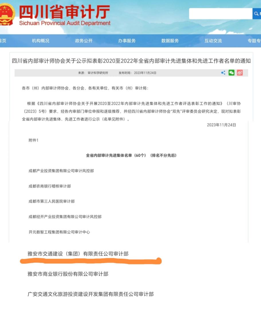 雅安交建集團黨委高度重視內(nèi)部審計工作,公司成立獨立內(nèi)審機構,由集團黨委書記、董事長直接分管,按照內(nèi)審計劃和黨委、董事會安排,獨立開展工作,并定期向黨委、董事會匯報內(nèi)審工作開展情況。近年來,公司已建立《內(nèi)部審計工作管理辦法》《經(jīng)濟責任審計實施細則》等內(nèi)部審計制度,通過全面審計、專項審計和“1+N”內(nèi)部監(jiān)督檢查工作機制,規(guī)范集團及子公司制度建設,提升管理水平,助力集團創(chuàng)建“千億國企,品質交建”。
