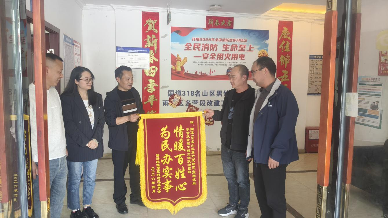 4月12日,雅安市雨城區(qū)碧峰峽鎮(zhèn)席草村村委會負責(zé)人將一面承載著全村村民深厚情誼的錦旗送至康藏路橋公司國道318三標(biāo)段項目部,感謝國道318三標(biāo)段項目部在席草村道路修繕、鄉(xiāng)村振興、人居環(huán)境改善工作中的傾情幫扶。