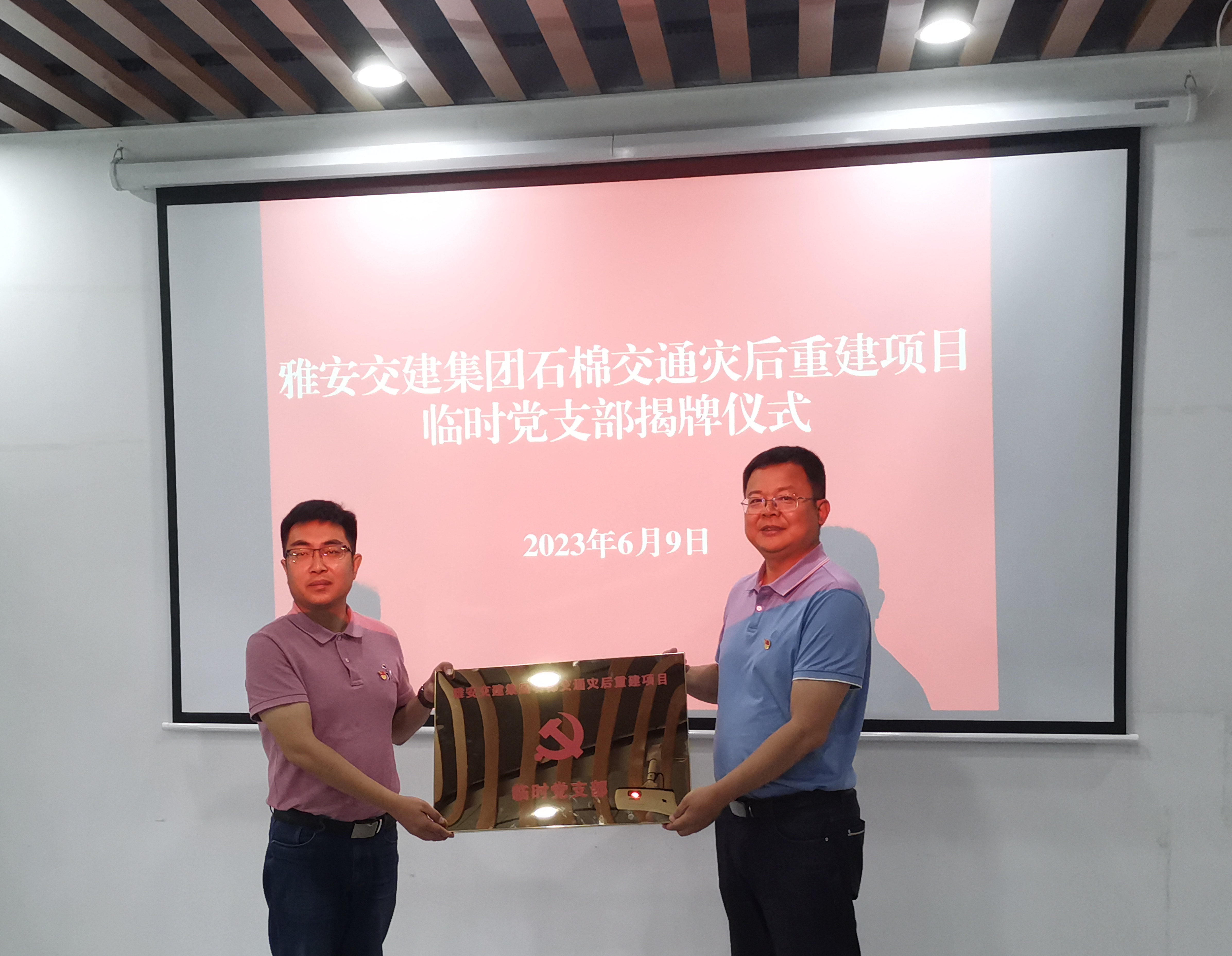 為實現(xiàn)黨的組織和黨建工作在項目一線全覆蓋,堅持把支部建在項目上,確保項目建設(shè)到哪里,黨的建設(shè)就跟進到哪里,黨員就奮戰(zhàn)在哪里。2023年6月9日上午,雅安交建集團舉行石棉交通災(zāi)后重建項目臨時黨支部揭牌儀式,集團黨委副書記張萬清,臨時黨支部全體成員參加。