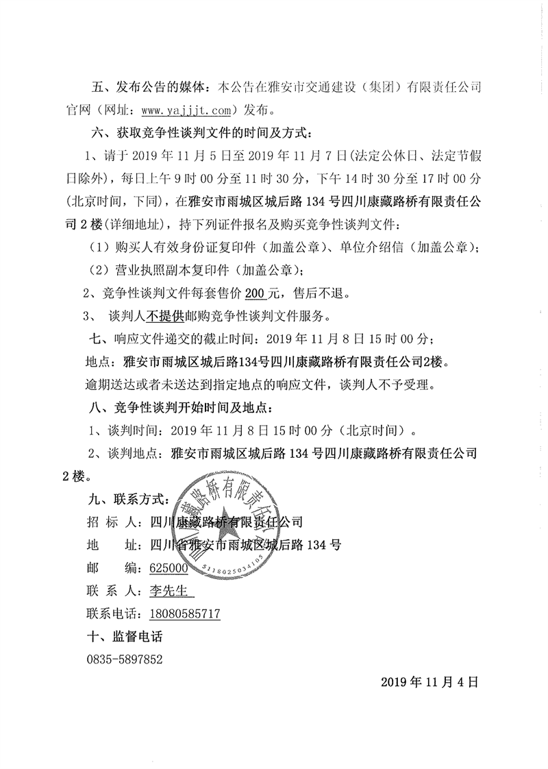 四川康藏路橋有限責任公司省道104線草壩至姚橋段改建工程項目部駐地板房采購競爭性談判(第二次)公告