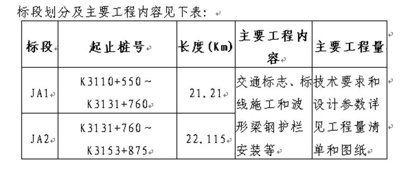 2.2招標(biāo)范圍:本次招標(biāo)范圍為國道351線磽磧至夾金山路面改造工程公路安全設(shè)施施工標(biāo)段招標(biāo),工程內(nèi)容包括:全線交通標(biāo)志、交通標(biāo)線、里程碑、百米樁、公路界碑施工和波形梁鋼護欄安裝等。
