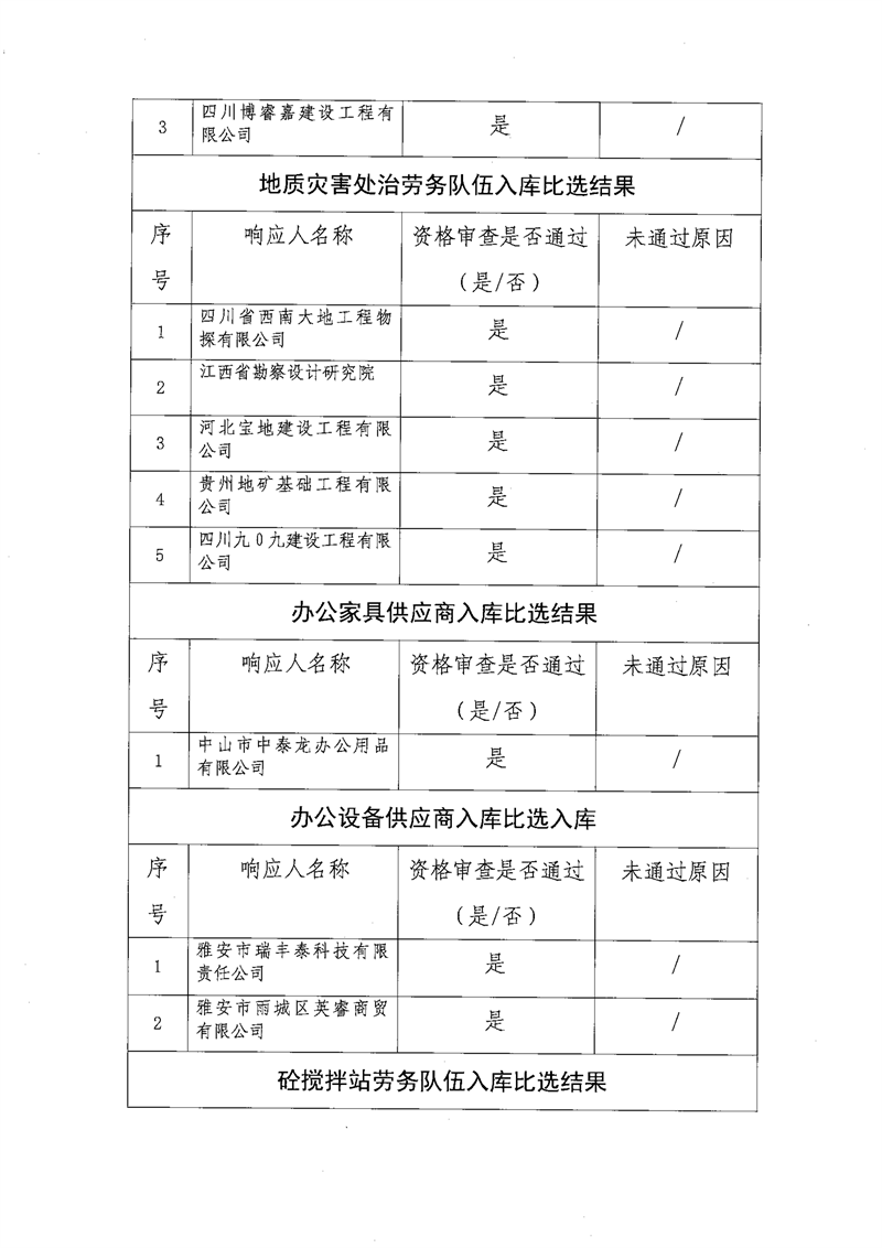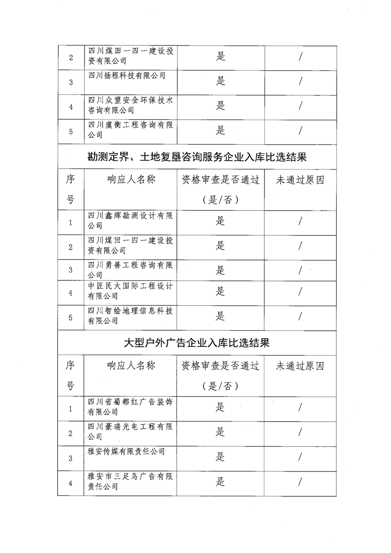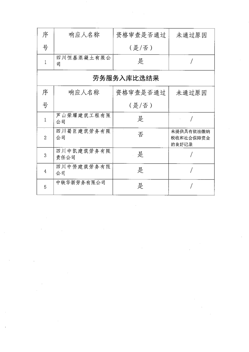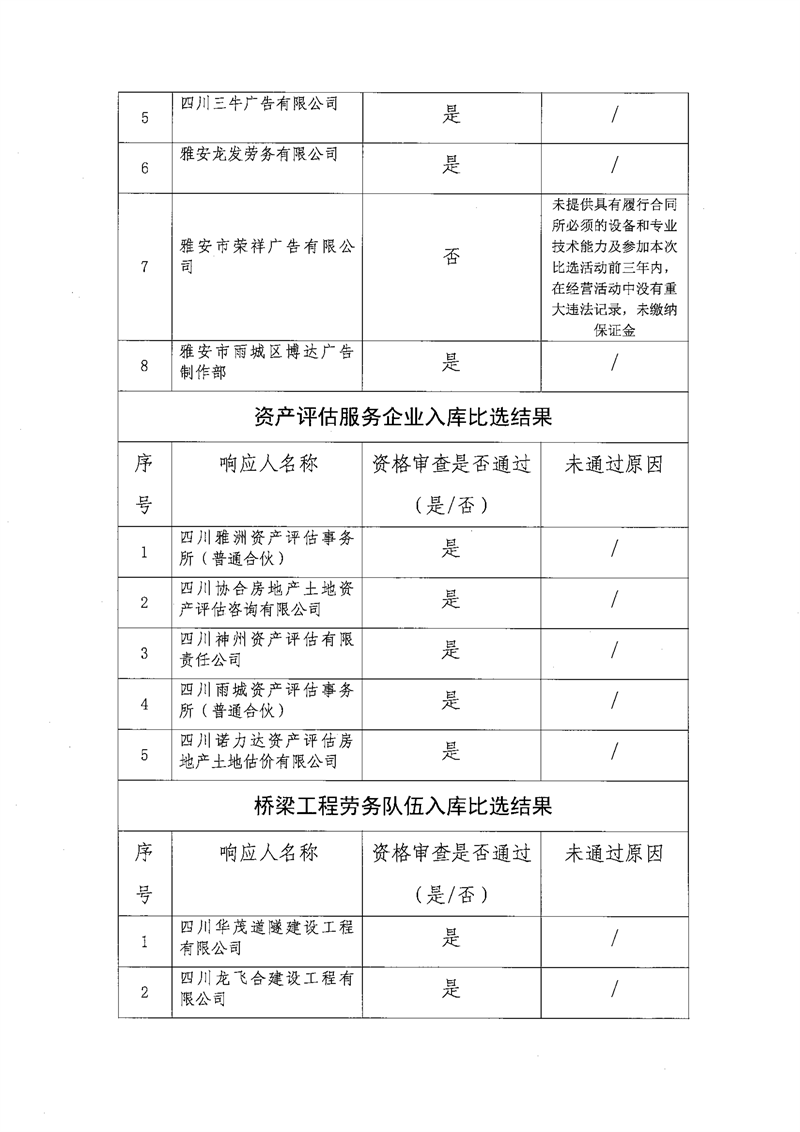 雅安交通建設(shè)(集團)有限責(zé)任公司比選入庫補錄結(jié)果公示