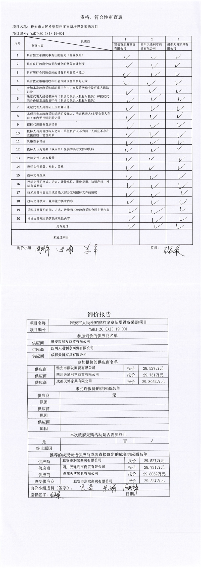 雅安市人民檢察院檔案室新增設(shè)備采購(gòu)項(xiàng)目結(jié)果公示