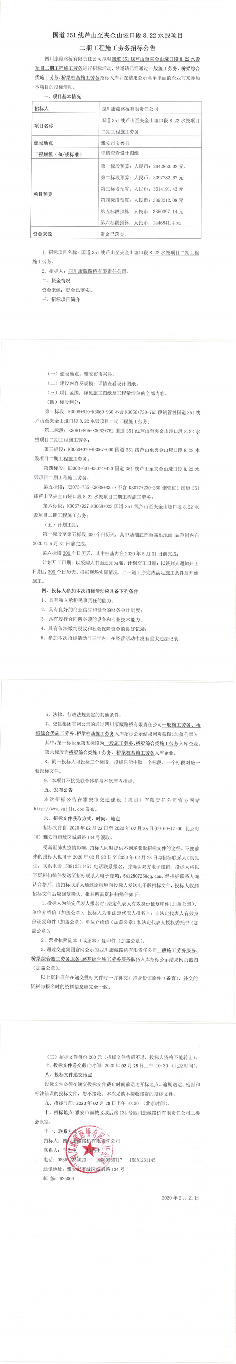 四川康藏路橋有限責(zé)任公司國(guó)道351線蘆山至夾金山埡口段8.22水毀項(xiàng)目二期工程施工勞務(wù)招標(biāo)公告