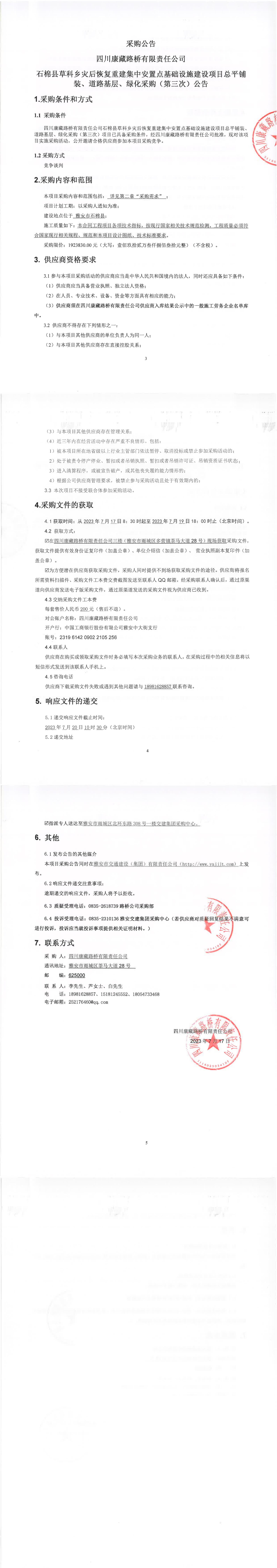 四川康藏路橋有限責任公司石棉縣草科鄉(xiāng)災后恢復重建集中安置點基礎(chǔ)設(shè)施建設(shè)項目總平鋪裝、道路基層、綠化采購(第三次)公告