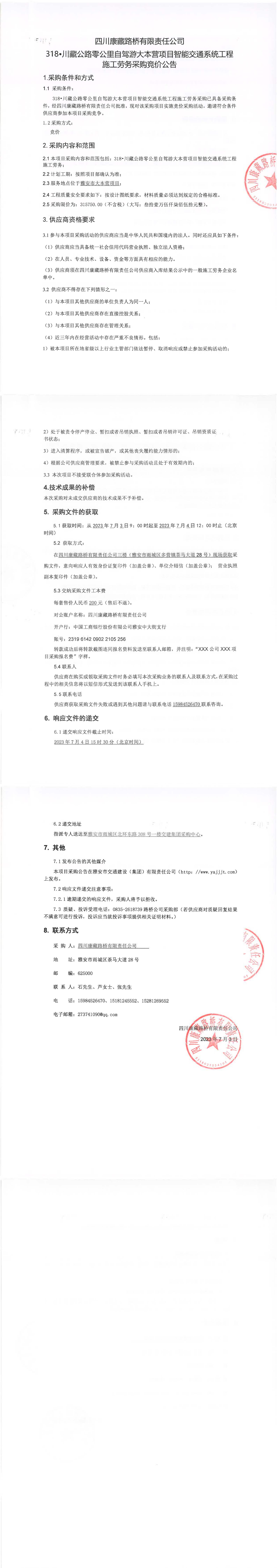 四川康藏路橋有限責任公司318·川藏公路零公里自駕游大本營項目智能交通系統(tǒng)工程施工勞務(wù)采購公告
