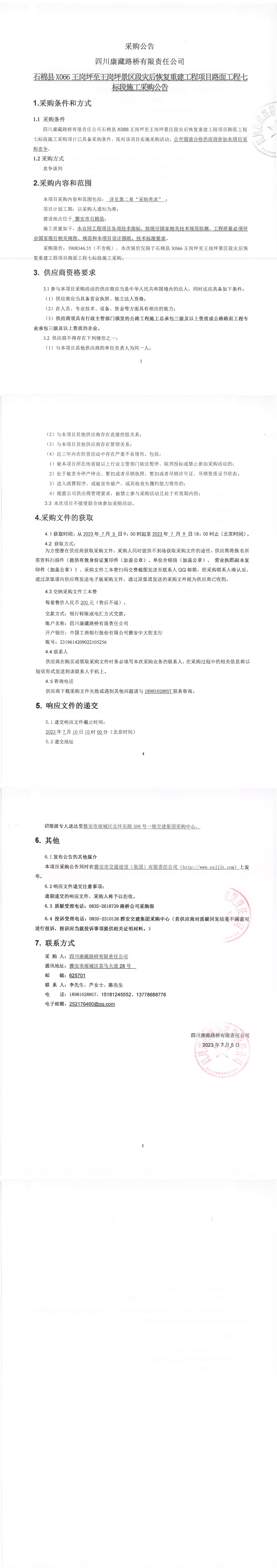 四川康藏路橋有限責任公司石棉縣X66X王崗坪景區(qū)段災(zāi)后恢復(fù)重建工程項目路面工程七標段施工采購公告