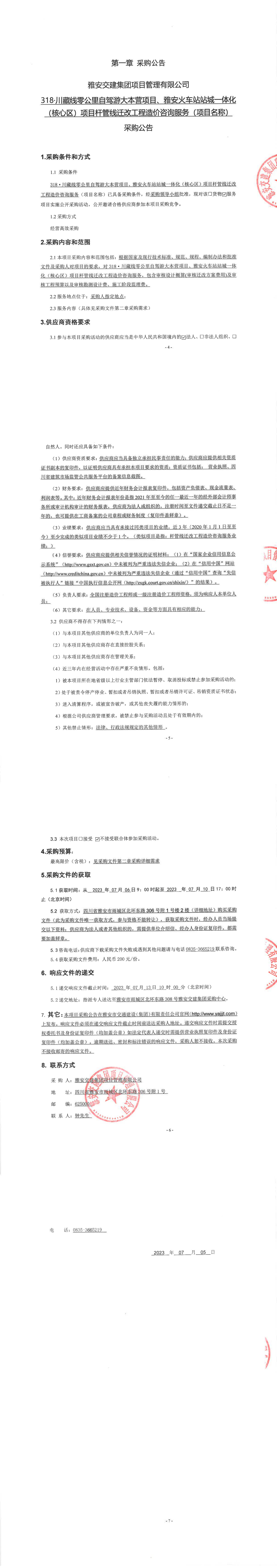 雅安交建集團(tuán)項(xiàng)目管理有限公司318·川藏線零公里自駕大本營(yíng)項(xiàng)目、雅安火車站站城一體化(核心區(qū))項(xiàng)目桿管線遷改工程造價(jià)咨詢服務(wù)(項(xiàng)目名稱)采購(gòu)公告