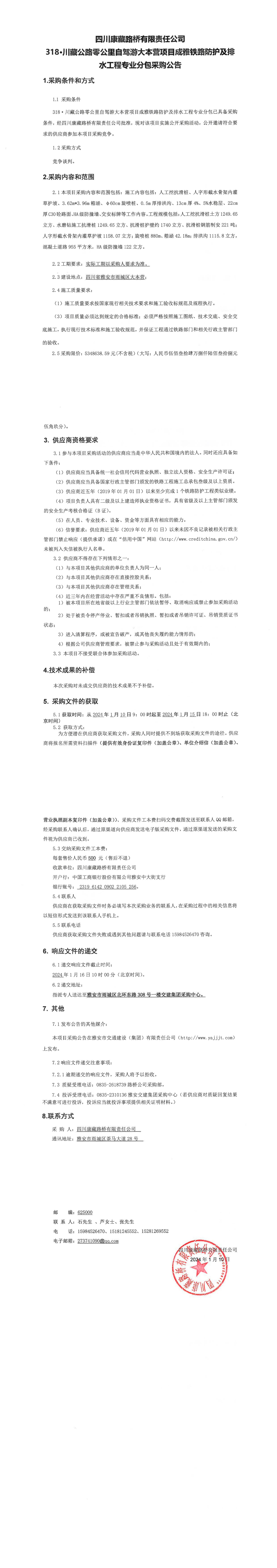 四川康藏路橋有限責(zé)任公司318·川藏公路零公里自駕游大本營項(xiàng)目成雅鐵路防護(hù)及排水工程專業(yè)分包采購公告