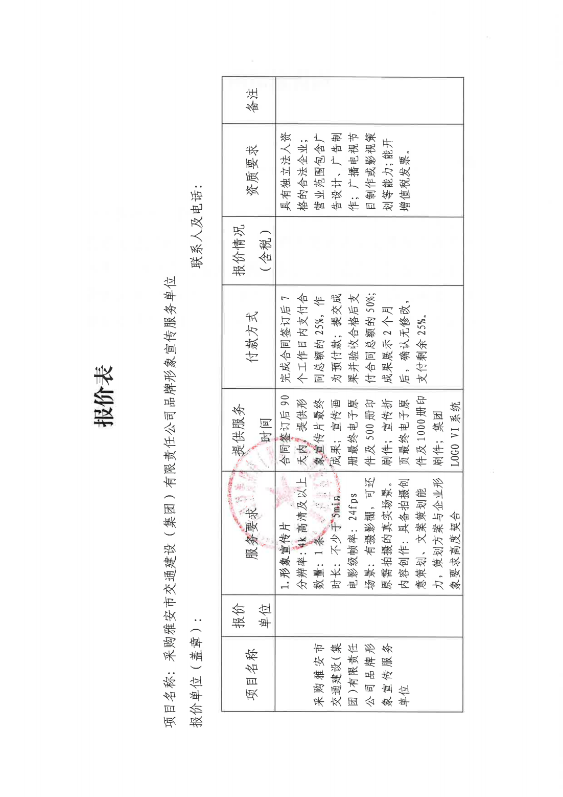 關(guān)于采購集團品牌形象宣傳服務單位的詢價函