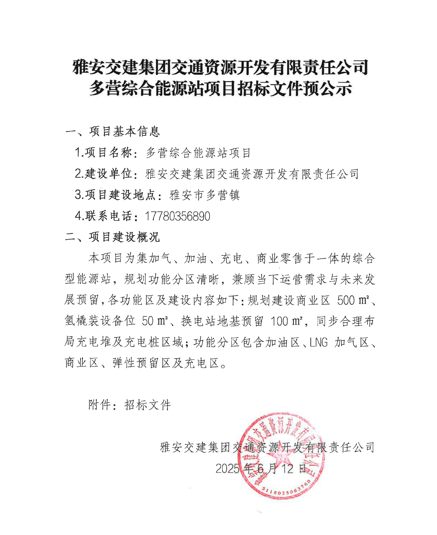 雅安交建集團(tuán)交通資源開(kāi)發(fā)有限責(zé)任公司多營(yíng)綜合能源站項(xiàng)目招標(biāo)文件預(yù)公示