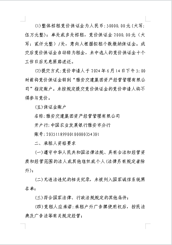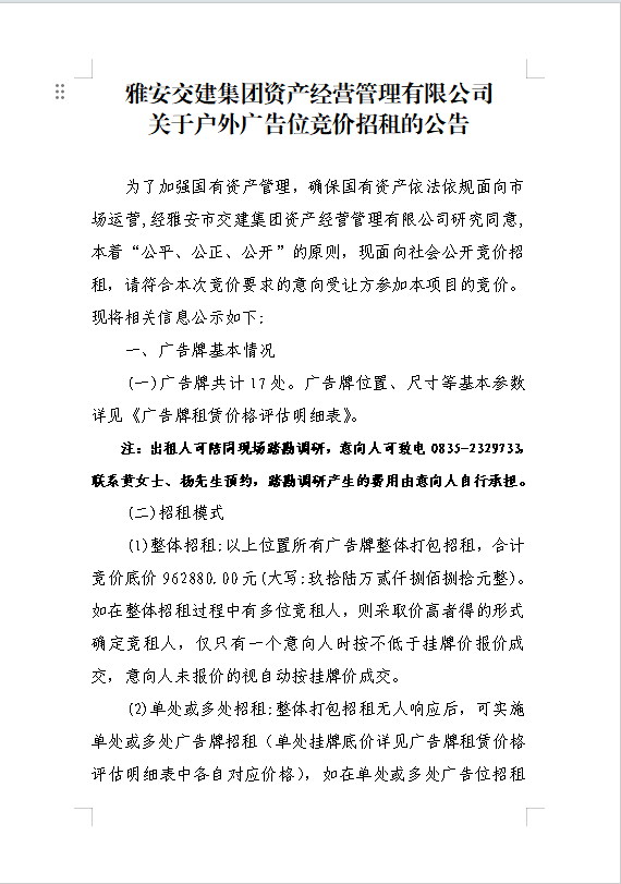 雅安交建集團(tuán)資產(chǎn)經(jīng)營管理有限公司關(guān)于戶外廣告位競(jìng)價(jià)招租的公告附件