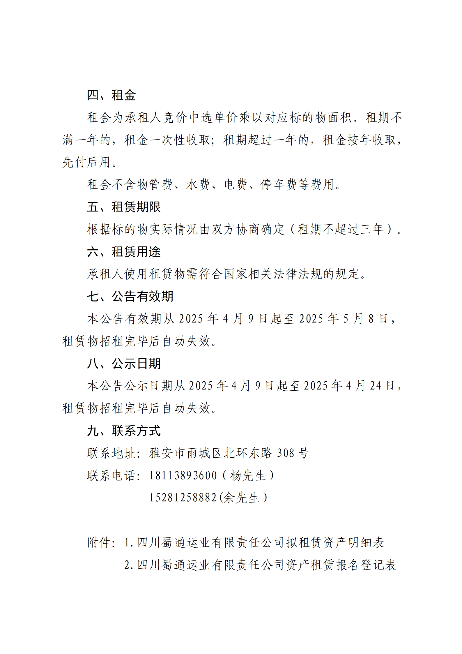 四川蜀通運業(yè)有限責(zé)任公司 關(guān)于康藏路261號附22號、平安路30號兩處門面進行掛網(wǎng)招租的公告