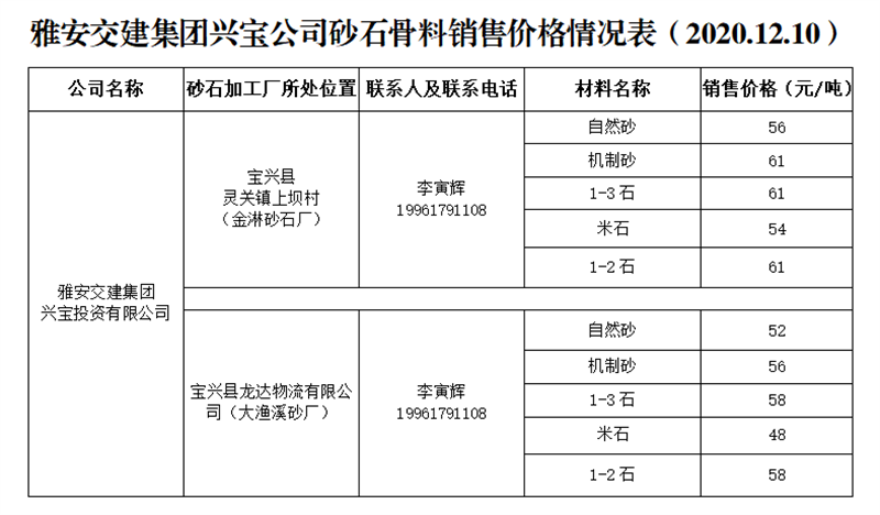 ÑŰ²½»½¨¼¯ˆF(tu¨¢n)ß\(y¨´n)ͨ¹«Ë¾É°Ê¯¹ÇÁÏäN(xi¨¡o)ÊÛƒr(ji¨¤)¸ñÇé›r±í£¨2020.12.10£©